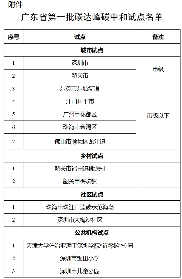 附件:廣東省第一批碳達峰碳中和試點名單