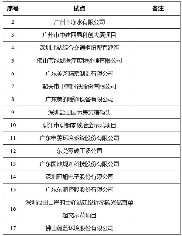 廣東省公布第一批碳達峰碳中和試點公示名單