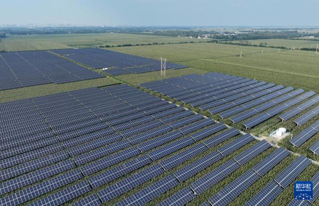 8月21日拍攝的河北省衡水市冀州區(qū)冀州鎮(zhèn)附近的“農(nóng)光互補”光伏發(fā)電場(無人機照片)。新華社記者 楊世堯 攝