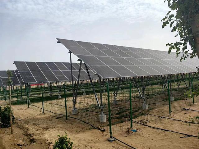 該項目在引用已經(jīng)示范驗收的沙漠土壤化改造、旱生作物種植及改良、高效節(jié)水等現(xiàn)代農(nóng)業(yè)技術的基礎上,首次嘗試農(nóng)光互補的模式。