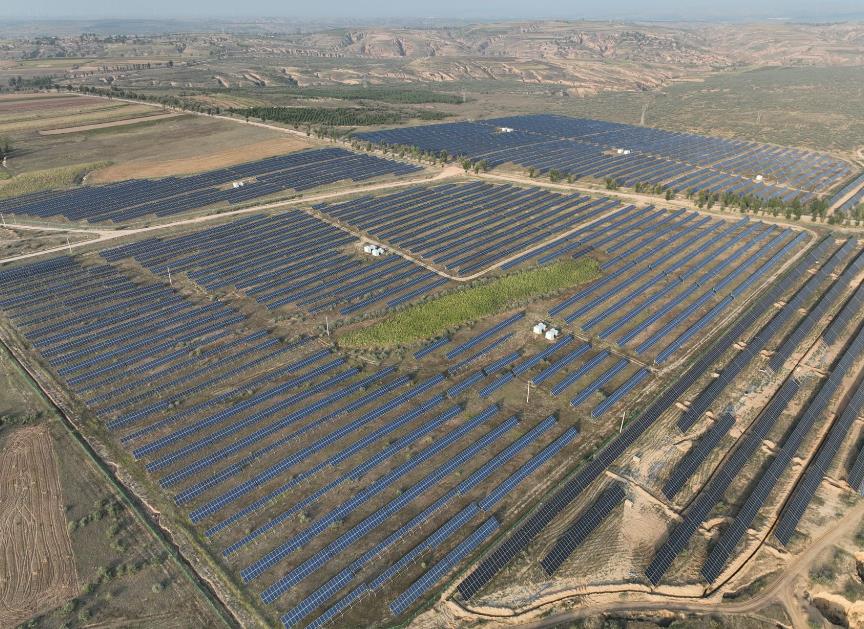 走進(jìn)清水河光伏項(xiàng)目現(xiàn)場(chǎng),整齊遼闊的太陽能光伏板像“藍(lán)色海洋”,在發(fā)出綠色電能的同時(shí),還有效遮擋了暴曬的陽光,守護(hù)板下植被。該項(xiàng)目在高茂泉窯村配套投資建設(shè)了清水河光伏公園及清水河沿黃河高質(zhì)量發(fā)展展覽館、村口樓牌、形象雕塑等硬件設(shè)施,將高茂泉窯村打造成為清水河縣新農(nóng)村旅游打卡地。該項(xiàng)目通過光伏發(fā)電與水土保持、農(nóng)牧業(yè)和旅游業(yè)相結(jié)合的“光伏+環(huán)境綜合治理”生態(tài)修復(fù)模式,實(shí)現(xiàn)了清潔能源和土地資源的高效利用,有效推動(dòng)了當(dāng)?shù)芈糜螛I(yè)的蓬勃發(fā)展,積極改善當(dāng)?shù)厣鷳B(tài)環(huán)境。