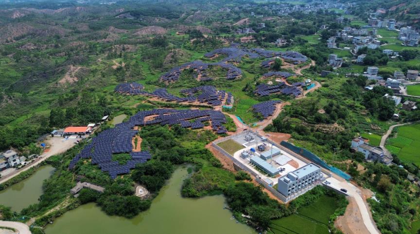 五華黃泥寨光伏項(xiàng)目是梅州市五華縣首個(gè)集中式大型光伏發(fā)電項(xiàng)目,總裝機(jī)容量70兆瓦,占地約1420畝,總投資約3.36億元。項(xiàng)目采用農(nóng)光互補(bǔ)模式,利用光伏板下種植農(nóng)作物及養(yǎng)殖雞、鴨等相結(jié)合,實(shí)現(xiàn)光伏發(fā)電與農(nóng)業(yè)創(chuàng)收雙贏,拓寬農(nóng)民增收渠道。該項(xiàng)目通過農(nóng)光互補(bǔ)模式,不僅有效利用土地資源,還能對(duì)項(xiàng)目建設(shè)地的水土保持、防風(fēng)固沙起到一定的保護(hù)作用。此外,通過植物腐爛后的再循環(huán)可以有效改善項(xiàng)目建設(shè)地的生態(tài)循環(huán)。