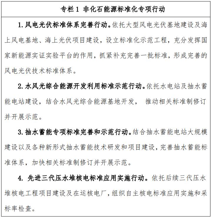 ——建立完善以光伏、風(fēng)電為主的可再生能源標準體系,研究建立支撐新型電力系統(tǒng)建設(shè)的標準體系,加快完善新型儲能標準體系,有力支撐大型風(fēng)電光伏基地、分布式能源等開發(fā)建設(shè)、并網(wǎng)運行和消納利用。