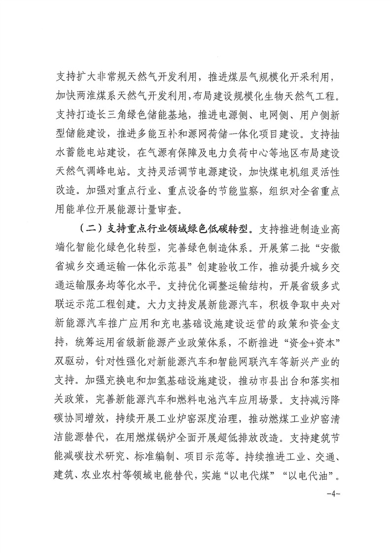 通知指出,支持企業(yè)開展節(jié)能減煤技術(shù)改造,重點(diǎn)削減非電力用煤,提高電力用煤比例。大力支持可再生能源高比例應(yīng)用,支持光伏發(fā)電和風(fēng)電資源開發(fā),推進(jìn)生物質(zhì)能發(fā)電、清潔供暖、熱電聯(lián)產(chǎn)、生物質(zhì)天然氣等多元化發(fā)展。支持?jǐn)U大非常規(guī)天然氣開發(fā)利用,推進(jìn)煤層氣規(guī)?;_采利用,加快兩淮煤系天然氣開發(fā)利用,布局建設(shè)規(guī)?;锾烊粴夤こ?。支持打造長三角綠色儲(chǔ)能基地,推進(jìn)電源側(cè)、電網(wǎng)側(cè)、用戶側(cè)新型儲(chǔ)能建設(shè),推進(jìn)多能互補(bǔ)和源網(wǎng)荷儲(chǔ)一體化項(xiàng)目建設(shè)。支持抽水蓄能電站建設(shè),在氣源有保障及電力負(fù)荷中心等地區(qū)布局建設(shè)天然氣調(diào)峰電站。支持靈活調(diào)節(jié)電源建設(shè),加快煤電機(jī)組靈活性改造。加強(qiáng)對(duì)重點(diǎn)行業(yè)、重點(diǎn)設(shè)備的節(jié)能監(jiān)察,組織對(duì)全省重點(diǎn)用能單位開展能源計(jì)量審查。