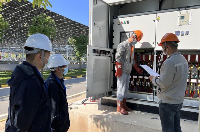 北湖污水處理廠承擔(dān)著半個(gè)武昌城的污水處理工作,為了確保光伏電站并網(wǎng)過程中及投運(yùn)后污水處理廠的正常運(yùn)營,綠色產(chǎn)業(yè)分公司的技術(shù)攻關(guān)、項(xiàng)目管理、運(yùn)維保障小組主動(dòng)擔(dān)當(dāng)作為,與北湖污水處理廠、武漢市供電公司等相關(guān)部門反復(fù)溝通,全程參與發(fā)電站并網(wǎng)方案的制定,以并網(wǎng)發(fā)電期間最大程度降低對污水處理廠運(yùn)行的影響為目標(biāo),以最短的時(shí)間、最優(yōu)的送電方式,最終制定并網(wǎng)發(fā)電實(shí)施方案,并保障了光伏并網(wǎng)發(fā)電期間廠區(qū)生產(chǎn)“零影響”。