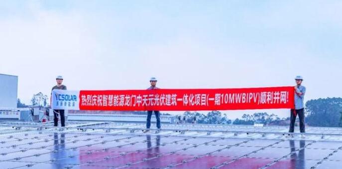 日前,由廣東惠電投綜合能源服務有限公司旗下惠州市智慧綜合能源服務有限公司(以下簡稱“智慧能源公司”)投資、廣西英辰新能源技術有限公司(以下簡稱“英辰新能源”)承建的智慧能源龍門中天元一期10兆瓦BIPV項目并網(wǎng)發(fā)電,預計首年發(fā)電量為1033萬千瓦時,首年利用小時數(shù)為1039.12小時,25 年累計發(fā)電量25825萬千瓦時,將對龍門縣工業(yè)經(jīng)濟高質量發(fā)展起到示范和促進作用。
