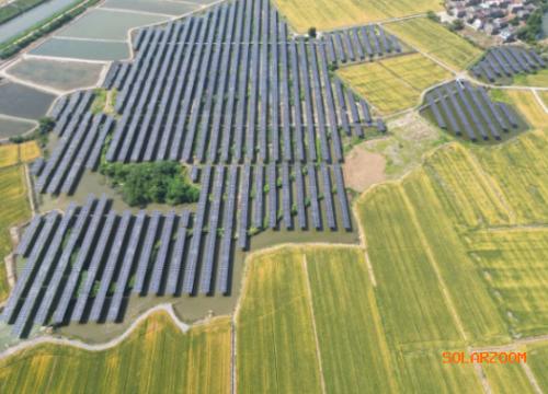 “領(lǐng)跑丹陽(yáng)”光伏電站位于江蘇省丹陽(yáng)市延陵鎮(zhèn),項(xiàng)目利用大呂村、趙巷村等5個(gè)行政村累計(jì)3200畝魚(yú)塘水域資源,采用漁光互補(bǔ)的方式建成。項(xiàng)目總投資約7.5億元,是蘇南五市目前為止并網(wǎng)規(guī)模最大的光伏電站。