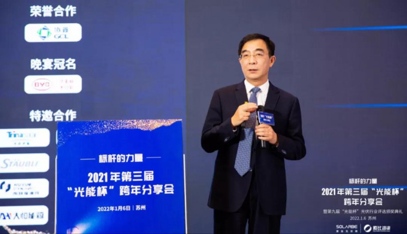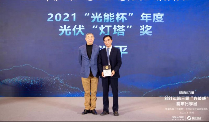 1月6日,備受矚目的2021年“光能杯”評選活動在蘇州盛大開啟,中環(huán)股份副董事長兼總經(jīng)理沈浩平先生被授予2021年度“光能杯”光伏“燈塔獎”,國家應(yīng)對氣候變化戰(zhàn)略研究和國際合作中心首任主任李俊峰先生為其現(xiàn)場頒獎。