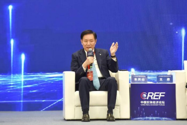朱共山在對(duì)話環(huán)節(jié)就“全球經(jīng)濟(jì)新格局下的產(chǎn)業(yè)鏈供應(yīng)鏈重構(gòu)”話題分享觀點(diǎn)。