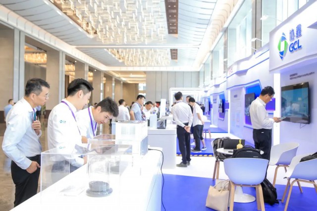 應主辦方安排,協(xié)鑫集團在會場外特設協(xié)鑫展臺,重磅呈現(xiàn)“數字能源智算平臺”“下一代光伏組件”“光儲融會”和顆粒硅、GCL-PHY磷酸鐵鋰、硅酸負極材料、智能組串式儲能系統(tǒng)等“黑科技”實物矩陣,吸引了眾多與會者駐足觀看。