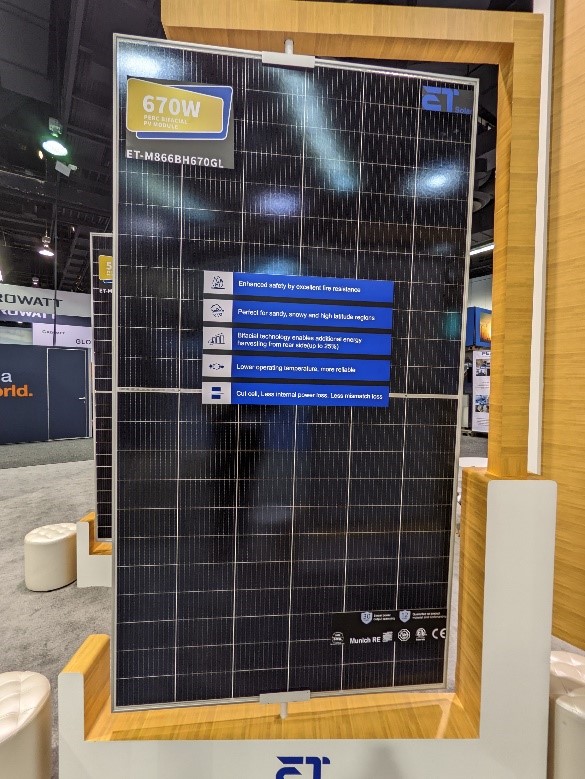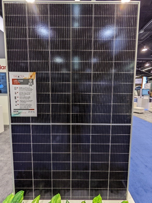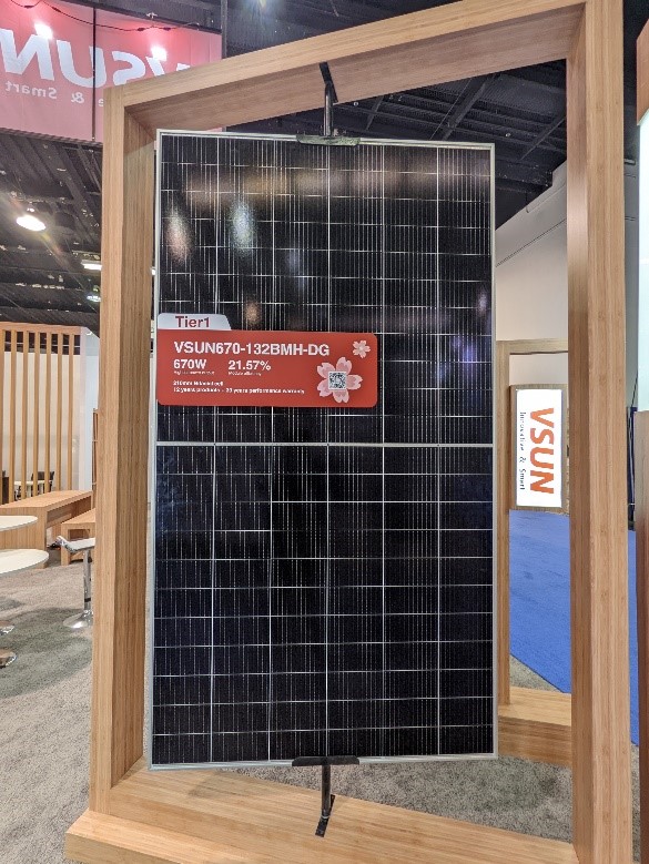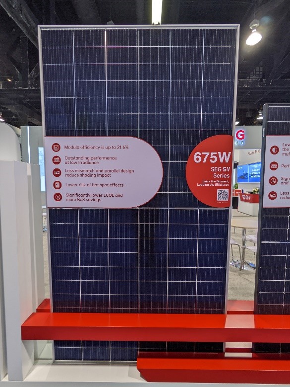 據(jù)不完全統(tǒng)計,在本次RE+展會中,中國領軍企業(yè)天合光能、阿特斯、正泰,海外企業(yè)韓華、SEG、Waaree等10多家光伏領先企業(yè)紛紛推出600W+產(chǎn)品。600W+產(chǎn)品在北美已經(jīng)蔚然成風,成先進組件的代表。