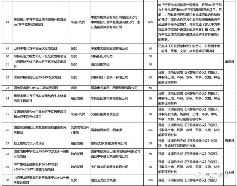 晉能、中廣核、上海電氣、阿特斯、金風(fēng)科技、中能建等企業(yè)也有10~50萬(wàn)kW的項(xiàng)目規(guī)模。