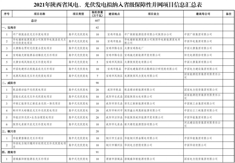 關(guān)于陜西省2021年風(fēng)電、光伏發(fā)電保障性并網(wǎng)項(xiàng)目競(jìng)爭(zhēng)性配置結(jié)果的公示