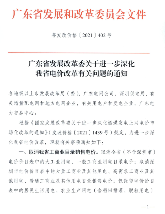 日前,廣東省發(fā)展改革委印發(fā)《關(guān)于進(jìn)一步深化我省電價改革有關(guān)問題的通知》,通知明確,取消工商業(yè)目錄銷售電價;保持居民、農(nóng)業(yè)用電價格穩(wěn)定; 完善電力市場交易;推動工商業(yè)用戶都進(jìn)入市場;建立健全電網(wǎng)企業(yè)代理購電機制;加強與分時電價政策銜接。