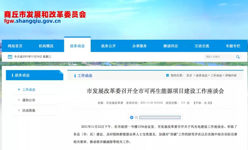 11月22日,商丘市發(fā)改委在市政府一號樓1536會議室,市發(fā)展改革委召開關于風光電建設工作座談會。聽取了各縣(市、區(qū))建議,及時吸納新能源業(yè)界人士寶貴意見,加強對“雙碳”工作的研究并在以后實施中結合實際完善相關要求,推動我市碳減排等相關工作。