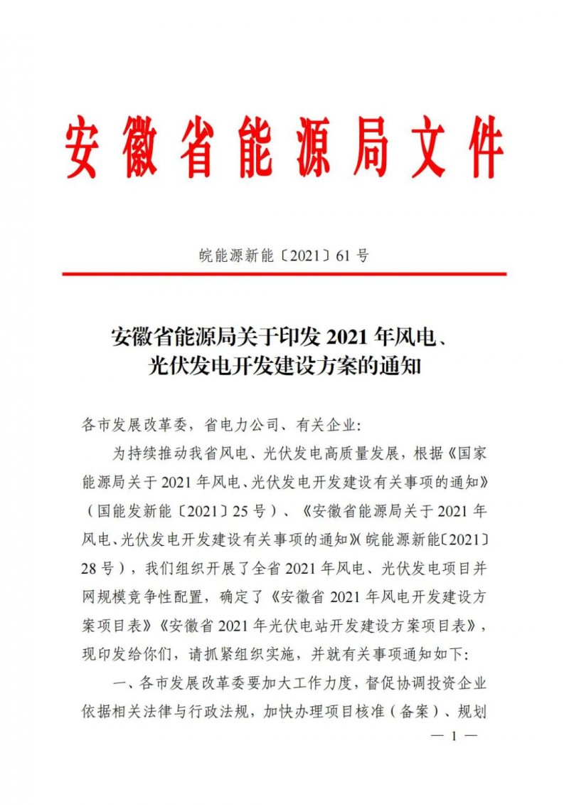 安徽能源局發(fā)布6GW風、光項目優(yōu)選名單