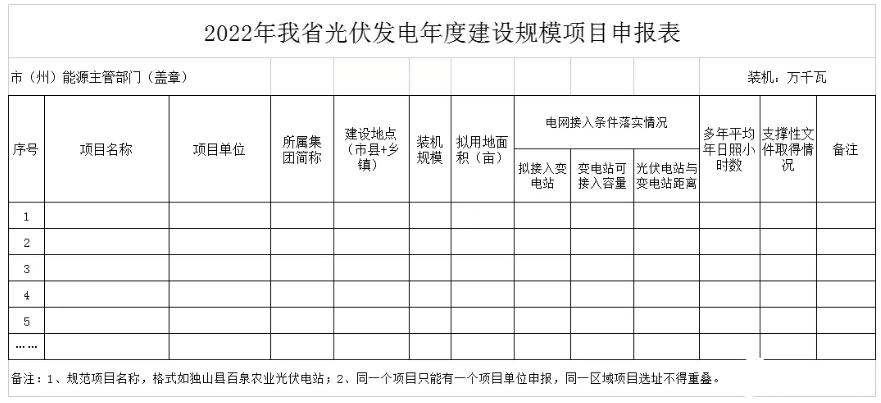 為積極貫徹落實(shí)國家“碳達(dá)峰、碳中和”工作目標(biāo),實(shí)現(xiàn)我省能源產(chǎn)業(yè)轉(zhuǎn)型、高質(zhì)量發(fā)展,有序推進(jìn)新能源項(xiàng)目建設(shè),根據(jù)《貴州省風(fēng)電光伏發(fā)電項(xiàng)目管理暫行辦法》,現(xiàn)開展我省2022年風(fēng)電光伏發(fā)電年度建設(shè)規(guī)模項(xiàng)目申報(bào)工作,有關(guān)事項(xiàng)通知如下: