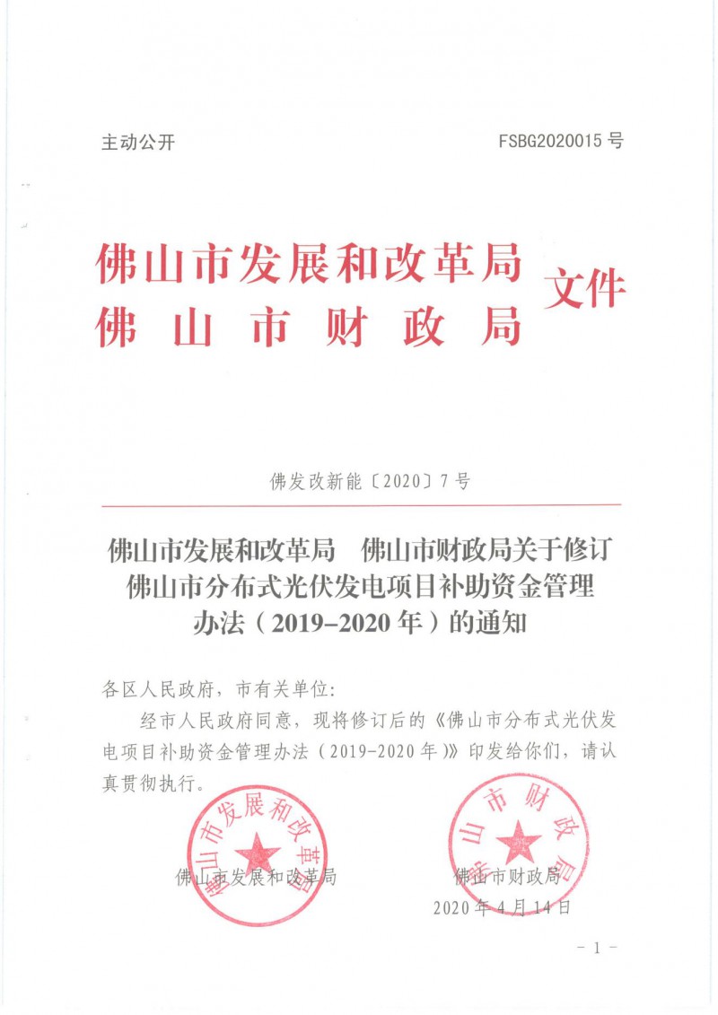 根據(jù)《佛山市人民政府辦公室關(guān)于對2016—2018年建成光伏發(fā)電應(yīng)用項目進(jìn)行獎勵和補助的通知》(佛府辦〔2016〕57號,見附件1)、《佛山市發(fā)展和改革局佛山市財政局關(guān)于修訂佛山市分布式光伏發(fā)電項目補助資金管理辦法(2019—2020年)的通知》(佛發(fā)改新能〔2020〕7號,見附件2)的文件要求,現(xiàn)開展我區(qū)2020年度光伏補助資金申報工作,并將有關(guān)事項通知如下: