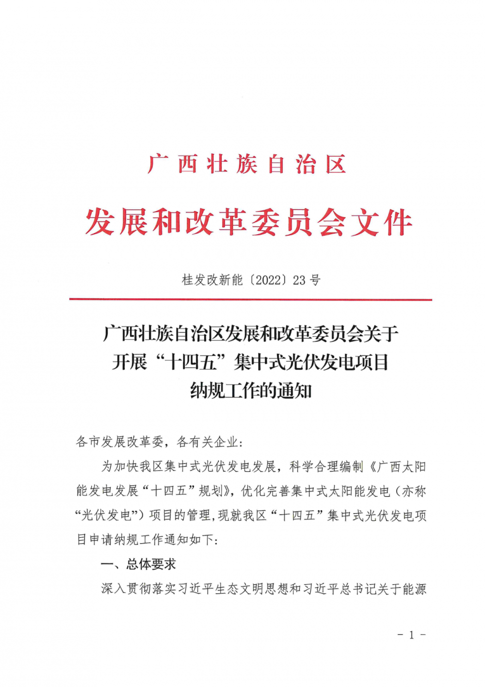 1月8日,廣西發(fā)改委印發(fā)《開展"十四五"集中式光伏發(fā)電項(xiàng)目納規(guī)工作的通知》,就建立集中式光伏規(guī)劃項(xiàng)目庫(kù)給出指導(dǎo)意見。