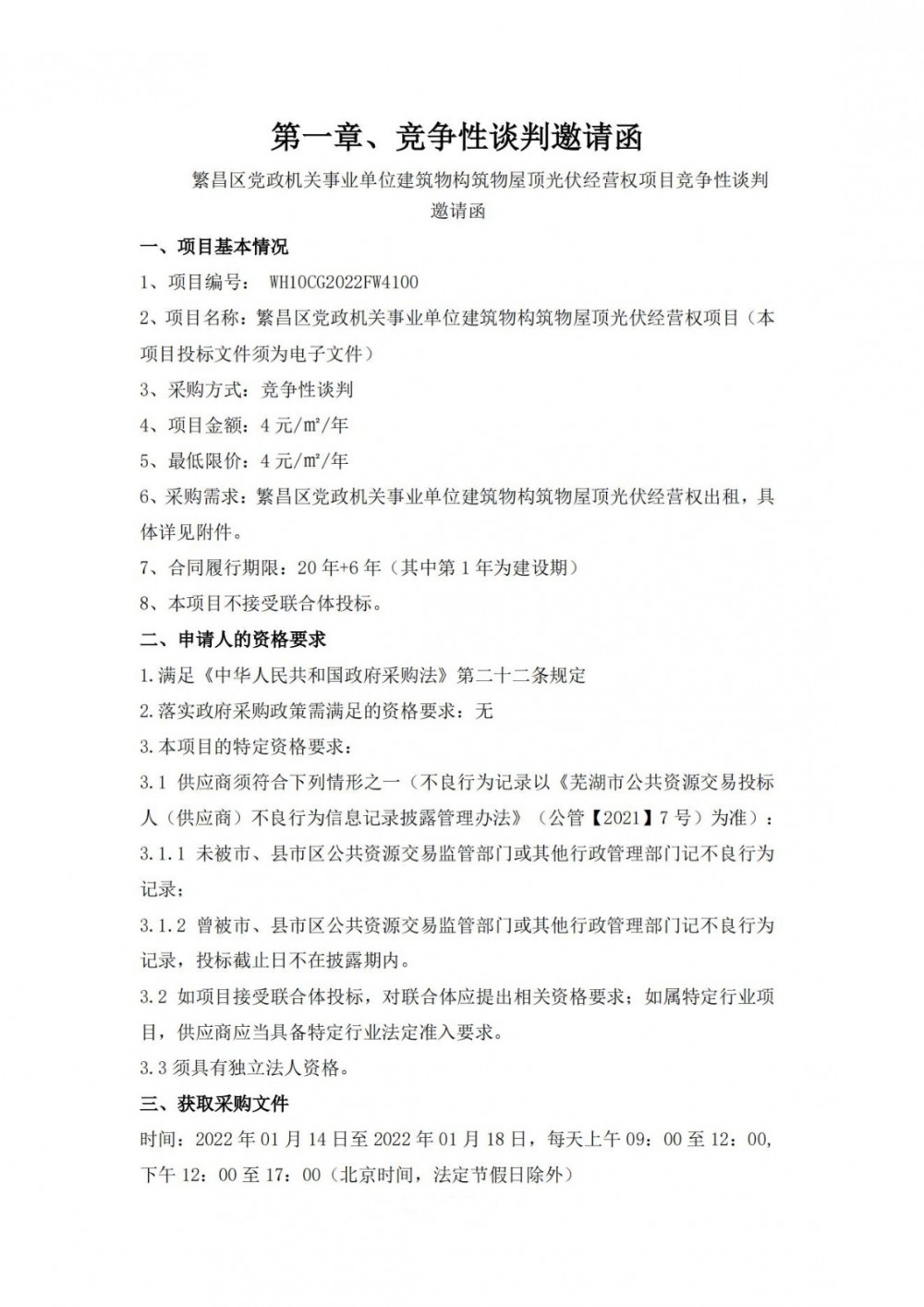 原標(biāo)題:最低限價(jià)4元/㎡/年!期限20年+6年!安徽蕪湖繁昌區(qū)黨政機(jī)關(guān)事業(yè)單位建筑物構(gòu)筑物屋頂光伏經(jīng)營(yíng)權(quán)項(xiàng)目出租!