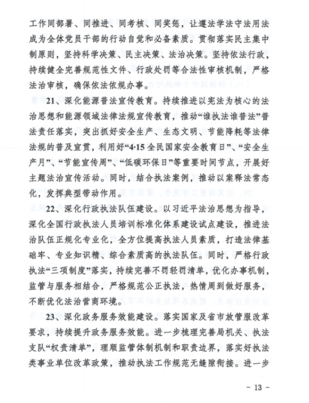 1、能源安全方面:全面落實安全監(jiān)管和設(shè)施保護(hù)職責(zé),理順監(jiān)管體制機(jī)制,以安全責(zé)任落實為抓手,全力保障煤礦安全生產(chǎn)和電力、油氣管道設(shè)施安全運行,確保能源領(lǐng)域安全生產(chǎn)形勢持續(xù)穩(wěn)定向好。