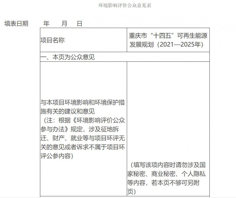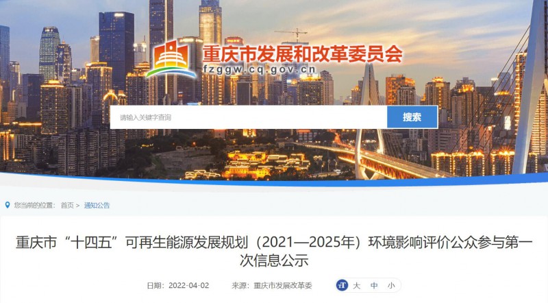 原標(biāo)題:重慶市“十四五”可再生能源發(fā)展規(guī)劃(2021—2025年)環(huán)境影響評價(jià)公眾參與第一次信息公示