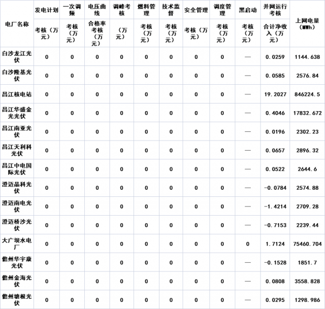 2022年6月海南統(tǒng)調(diào)電廠并網(wǎng)運(yùn)行考核結(jié)果