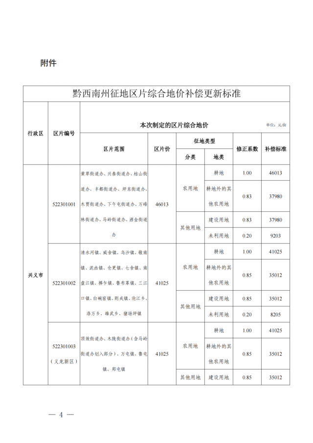 根據(jù)《州人民政府關(guān)于公布實(shí)施黔西南州征地區(qū)片綜合地價(jià)補(bǔ)償更新標(biāo)準(zhǔn)的通知》(黔西南府函〔2020〕69號(hào))補(bǔ)償標(biāo)準(zhǔn)執(zhí)行。