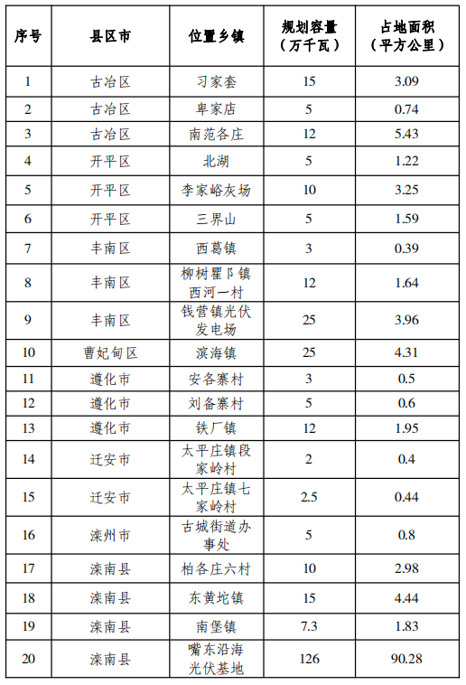 重點任務(wù)在南部曹妃甸、灤南、樂亭、海港等縣區(qū),結(jié)合水產(chǎn)養(yǎng)殖業(yè)、農(nóng)業(yè)、鹽業(yè)等既有產(chǎn)業(yè),規(guī)劃建設(shè)總量500萬千瓦漁光互補(bǔ)、鹽光互補(bǔ)基地項目;在北部玉田、遵化、遷西、遷安、灤州等縣(市),利用荒山荒坡,規(guī)劃建設(shè)總量100萬千瓦集中式光伏發(fā)電項目。