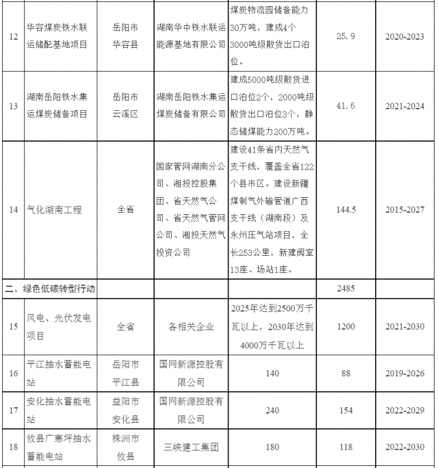 二、支撐電源建設(shè)工程?;痣娋哂姓{(diào)節(jié)性強(qiáng)、可靠性高等優(yōu)勢(shì),是滿足經(jīng)濟(jì)社會(huì)發(fā)展用電需求、實(shí)現(xiàn)雙碳目標(biāo)的重要支撐電源。重點(diǎn)推進(jìn)華電平江電廠,工程位于湖南省岳陽市平江縣余坪鎮(zhèn),本期建設(shè)2×100萬千瓦超超臨界燃煤發(fā)電機(jī)組,同步建設(shè)超低排放環(huán)保設(shè)施,配套建設(shè)鐵路專用線,總投資73.79億元。2020年12月5日主體工程正式開工,確保2022年內(nèi)正式投產(chǎn)。工程建成投產(chǎn)后,將為全省提供200萬千瓦穩(wěn)定供應(yīng)能力,是打贏2022年迎峰度冬電力保供任務(wù)的重點(diǎn)工程。同時(shí),加快國能岳陽電廠建設(shè),爭取2023年底前投產(chǎn)。積極推進(jìn)長安益陽電廠、大唐華銀株洲電廠、陜煤石門電廠3個(gè)煤電項(xiàng)目和湘投衡東燃?xì)怆姀S、華電長沙燃?xì)怆姀S、華能湘陰燃?xì)怆姀S3個(gè)氣電項(xiàng)目的前期工作,爭取2022年內(nèi)全部開工建設(shè)、“十四五”全部建成投產(chǎn),確保2025年全省支撐性煤電和調(diào)峰性氣電裝機(jī)規(guī)模達(dá)到3300萬千瓦左右。