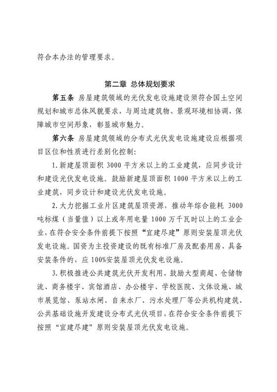 1.新建屋頂面積3000平方米以上的工業(yè)建筑,應(yīng)同步設(shè)計和建設(shè)光伏發(fā)電設(shè)施。鼓勵新建屋頂面積1000平方米以上的工業(yè)建筑,同步設(shè)計和建設(shè)光伏發(fā)電設(shè)施。