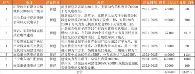 近期,固原市人民政府辦公室印發(fā)固原市自然資源保護(hù)和利用“十四五”規(guī)劃的通知。根據(jù)光伏們查詢(xún),在固原市自然資源保護(hù)和利用“十四五”規(guī)劃建設(shè)項(xiàng)目庫(kù)中,有關(guān)清潔能源產(chǎn)業(yè)的項(xiàng)目共10個(gè)。其中包括光伏、風(fēng)電、儲(chǔ)能的項(xiàng)目共7個(gè),合計(jì)新能源新建規(guī)模3152.9MW,總投資金額166億元。具體項(xiàng)目名單如下: