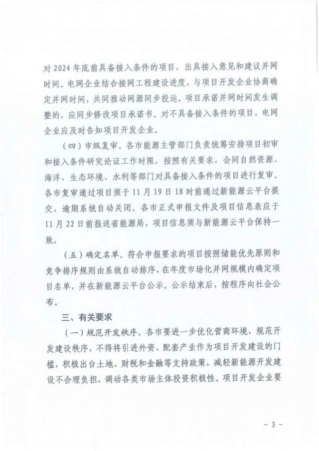 (四)市級復審。各市能源主管部門負責統(tǒng)籌安排項目初審和接入條件研究論證工作時限,按照有關要求,會同自然資源、海洋、生態(tài)環(huán)境、水利等部門對具備接入條件的項目進行復審。各市復審通過項目須于11月19日18時前通過新能源云平臺提交,逾期系統(tǒng)自動關閉。各市正式申報文件及項目信息表應于11月22日前報送省能源局,項目信息須與新能源云平臺保持一致。