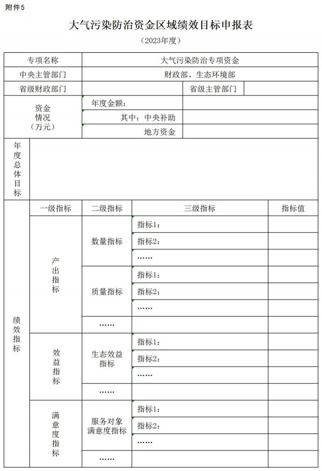 5.大氣污染防治資金區(qū)域績效目標申請表