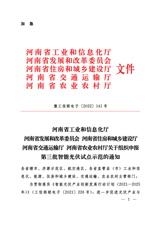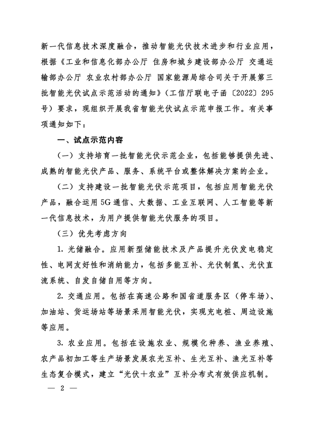 11月24日,河南省工信廳、發(fā)改委、住建廳、交通廳、農(nóng)業(yè)廳等聯(lián)合下發(fā)《關(guān)于組織申報第三批智能光伏試點示范的通知》,對示范企業(yè)、示范項目予以支持,包括:
