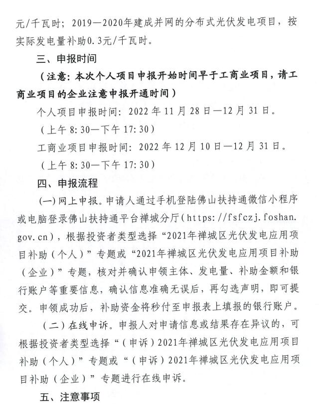11月28日,佛山市禪城區(qū)發(fā)展和改革局印發(fā)《關(guān)于開(kāi)展2021年度禪城區(qū)光伏發(fā)電應(yīng)用項(xiàng)日補(bǔ)助資金申報(bào)工作的通知》?!锻ㄖ访鞔_補(bǔ)助范圍:年在禪城區(qū)利用各類(lèi)型建筑物和構(gòu)筑物建成且符合國(guó)家、省、市光伏項(xiàng)目管理辦法要求的分布式光伏發(fā)電項(xiàng)目的投資者。