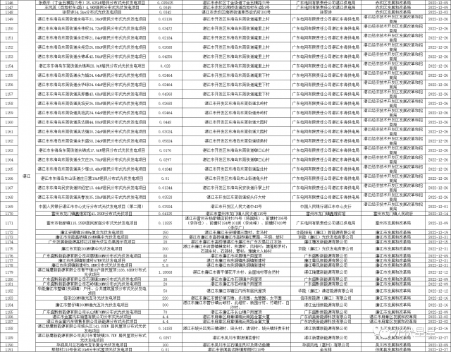 據(jù)廣東省投資備案平臺(tái)上統(tǒng)計(jì),2022年12月廣東省光伏項(xiàng)目備案1381個(gè),總?cè)萘考s5.3GW。其中地面光伏項(xiàng)目19個(gè),總?cè)萘繛?720MW,其中湛江占5個(gè),總?cè)萘?220MW,陽(yáng)江、清遠(yuǎn)、潮州皆超600MW,最大容量地面光伏項(xiàng)目為潮州項(xiàng)目600MW。