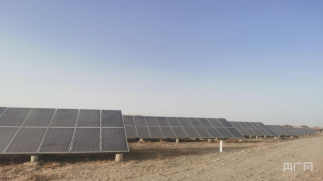 光伏電池板“匍匐”在塔克拉瑪干沙漠的邊緣(央廣網發(fā) 墨玉縣融媒體中心供圖)