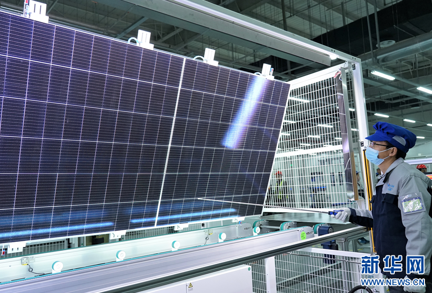 4月18日,在天合光能青海大基地年產(chǎn)15GW光伏組件項(xiàng)目首期5GW項(xiàng)目現(xiàn)場(chǎng),工作人員正在對(duì)產(chǎn)品進(jìn)行檢查。記者 解統(tǒng)強(qiáng) 攝