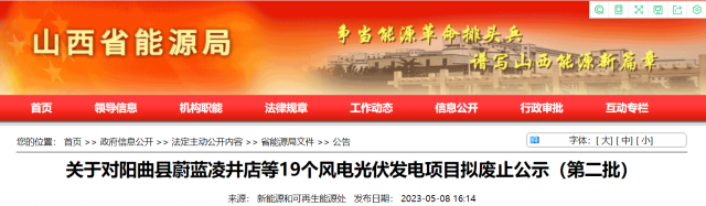 為加快推進(jìn)新能源“十四五”規(guī)劃建設(shè)進(jìn)度,實現(xiàn)我省新能源產(chǎn)業(yè)高質(zhì)量發(fā)展,我局組織各市能源局對2021年及之前項目單位投資不積極、確定無法建設(shè)的風(fēng)電光伏發(fā)電項目進(jìn)行了梳理。相關(guān)地市上報擬廢止項目清單,經(jīng)我局匯總,擬將陽曲縣蔚藍(lán)凌井店等19個總規(guī)模100.8萬千瓦風(fēng)電光伏發(fā)電項目予以廢止,現(xiàn)予公示。相關(guān)企業(yè)如有異議,請向相關(guān)市能源局提出書面意見,并在公示期(5個工作日)內(nèi),由市能源局上報省能源局。