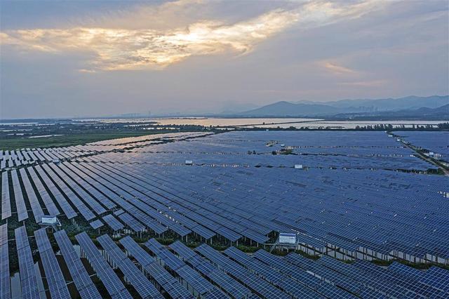 7月24日,航拍視角下的黃石新港大成100MW“漁光互補(bǔ)”光伏電站,一排排藍(lán)色的光伏板在水塘上整齊排列、連線成片,源源不斷的將太陽(yáng)光能轉(zhuǎn)化為電能,蔚為壯觀的景象給這片土地平添了幾分科技感。近日,黃石新港大成100MW漁光互補(bǔ)光伏電站全容量并網(wǎng),年發(fā)電量約1.1億度,可滿足55萬(wàn)戶家庭一個(gè)月的用電量,每年減排二氧化碳約8.4萬(wàn)噸。