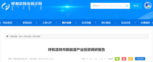 7月25日,呼和浩特市統(tǒng)計局發(fā)布《呼和浩特市新能源產(chǎn)業(yè)投資調(diào)研報告》稱,為加快優(yōu)化調(diào)整全市能源結(jié)構(gòu),推動能源綠色低碳轉(zhuǎn)型,近期,呼和浩特市統(tǒng)計局就全市在庫重點新能源產(chǎn)業(yè)項目展開調(diào)研。主要從投資進度、企業(yè)生產(chǎn)經(jīng)營情況、資金情況、未來市場預(yù)期等幾個方面進行了深入分析。