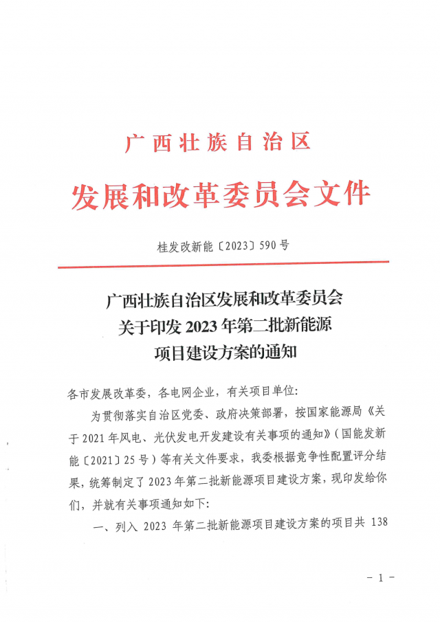 近日,廣西壯族自治區(qū)發(fā)展和改革委員會印發(fā)2023年第二批新能源項目建設(shè)方案的通知。