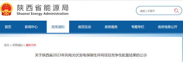 現將2023年陜西省風電、光伏發(fā)電保障性并網項目競爭性配置結果進行公示。公示時間為2023年8月25日至2023年8月31日,如有異議,請在公示期內以書面實名反映。
