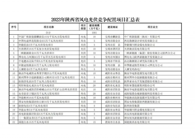 根據國家發(fā)展改革委辦公廳、國家能源局綜合司《關于2023年可再生能源電力消納責任權重及有關事項的通知》(發(fā)改辦能源〔2023〕569號)和《關于開展陜西省 2023 年風電光伏發(fā)電項目開發(fā)建設有關工作的通知》(陜發(fā)改能新能源〔20 23〕792 號)精神,在各市申報基礎上,我們組織省級自然資源、生態(tài)環(huán)境、林業(yè)等職能部門會審,省級電網評分和專家評審,綜合確定了117個項目1001萬千瓦納入2023年陜西省風電、光伏發(fā)電項目保障性并網規(guī)模(其中風電73個604萬千瓦,光伏44個397萬千瓦)。