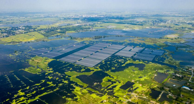 山東省濰坊市壽光市羊口鎮(zhèn)是百年曬鹽之地,這里的鹽堿地改良一直是個(gè)難題。國(guó)家電投壽光官臺(tái)營(yíng)子150兆瓦漁光互補(bǔ)發(fā)電項(xiàng)目通過(guò)廢舊低效鹽田水產(chǎn)養(yǎng)殖與光伏發(fā)電相結(jié)合,在水面上方架設(shè)光伏板陣列、板下水域養(yǎng)殖魚蝦,實(shí)現(xiàn)了土地資源的節(jié)約集約高效利用。經(jīng)測(cè)算,該項(xiàng)目每年可提供清潔電能約2.52億千瓦時(shí),替代標(biāo)準(zhǔn)煤7.7萬(wàn)噸,減排二氧化碳21萬(wàn)噸。