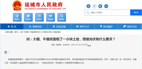 日前有群眾在運城市能源局官網(wǎng)詢問大棚、牛棚或者租了一小塊土地,想做光伏有什么要求?運城市能源局官方回復:根據(jù)省能源局要求,地面分布式光伏按照集中式光伏申報要求準備相關(guān)資料,具體需準備資料可到縣級能源局咨詢。其中“全額上網(wǎng)”或“自發(fā)自用,余量上網(wǎng)”項目需納入省能源局年度建設(shè)計劃;“全部自發(fā)自用”項目需列入市能源局年度建設(shè)計劃。
