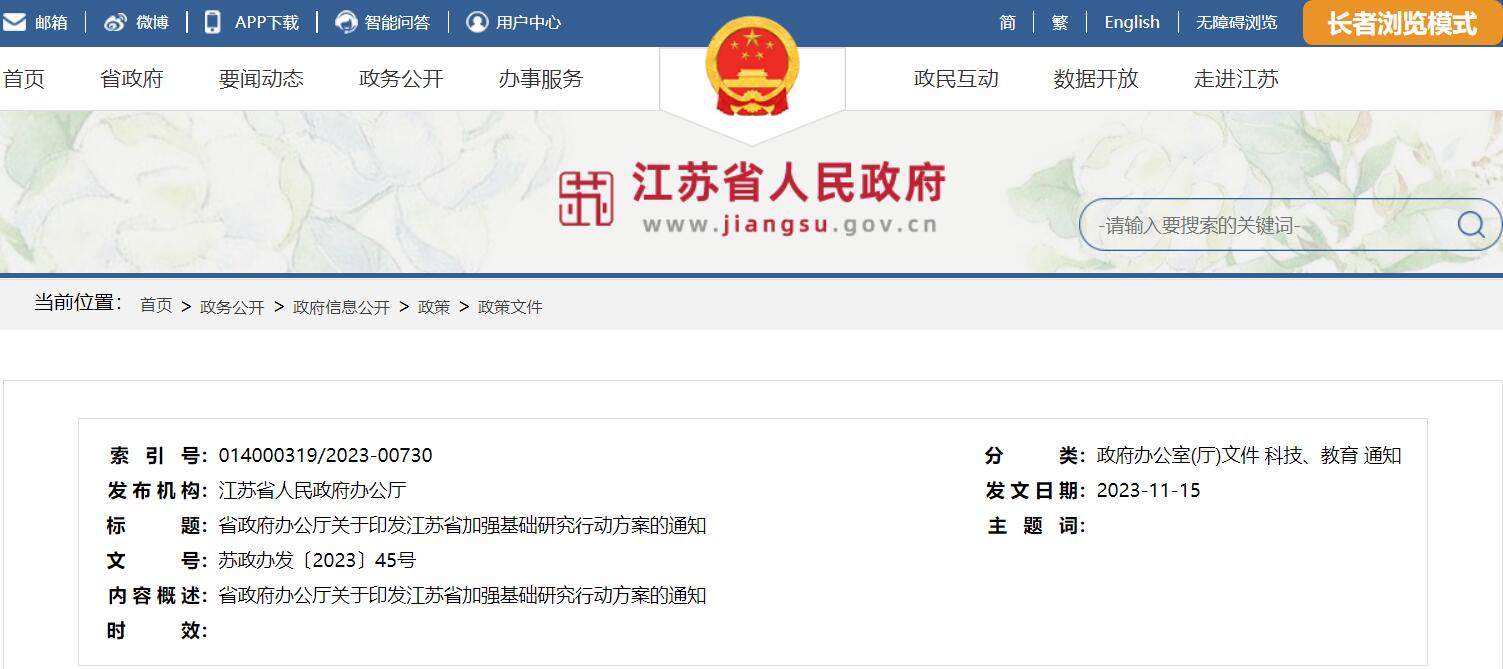 江蘇省加強(qiáng)基礎(chǔ)研究行動(dòng)方案的通知