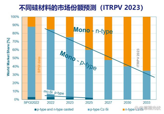 于是在包括晶澳在內(nèi)的頭部企業(yè)紛紛布局之下,n型產(chǎn)能迎來(lái)了迅速提升。據(jù)PV InfoLink預(yù)估,2023年底TOPCon名義產(chǎn)能將有望超過(guò)600GW,組件出貨有望達(dá)到約120GW上下的水平。明年上半年預(yù)計(jì)將有400GW-500GW產(chǎn)能投向市場(chǎng)。中期看,ITRPV預(yù)測(cè),到2033年n型產(chǎn)能市場(chǎng)占比有望達(dá)到60%,成為市場(chǎng)主流技術(shù)。