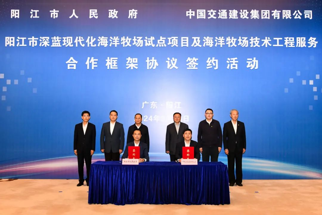 2月18日,中交集團(tuán)與廣東省陽(yáng)江市政府簽署陽(yáng)江深藍(lán)現(xiàn)代化海洋牧場(chǎng)試點(diǎn)項(xiàng)目及海洋牧場(chǎng)技術(shù)工程服務(wù)合作框架協(xié)議。